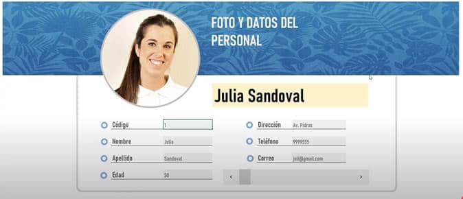 Como podemos apreciar en la imagen, todos los datos que puedan necesitar del personal lo tendrán a la vista, como su código de colaborador, nombre, apellido, edad, dirección, teléfono y correo electrónico.