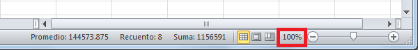 Entonces ahora el control deslizante de zoom nos permite ajustar de manera rápida el nivel de acercamiento o alejamiento de nuestra hoja. Podemos arrastrar el control deslizante hacia la derecha o izquierda Podemos pulsar repetidas ocasiones los botones +/- .