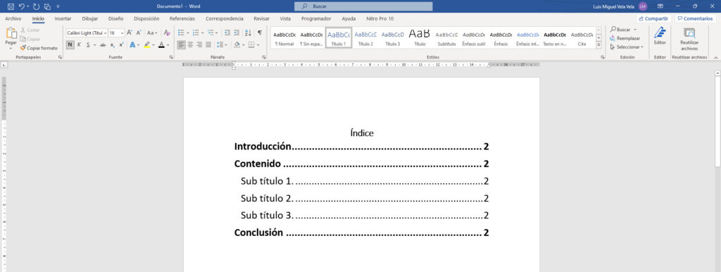 En este artículo vamos a aprender a crear un índice automático en Word de una manera fácil y sencilla, también lo podemos conocer como tabla de contenido. Estos índices se generan y actualizan de manera automática gracias a Microsoft Word.